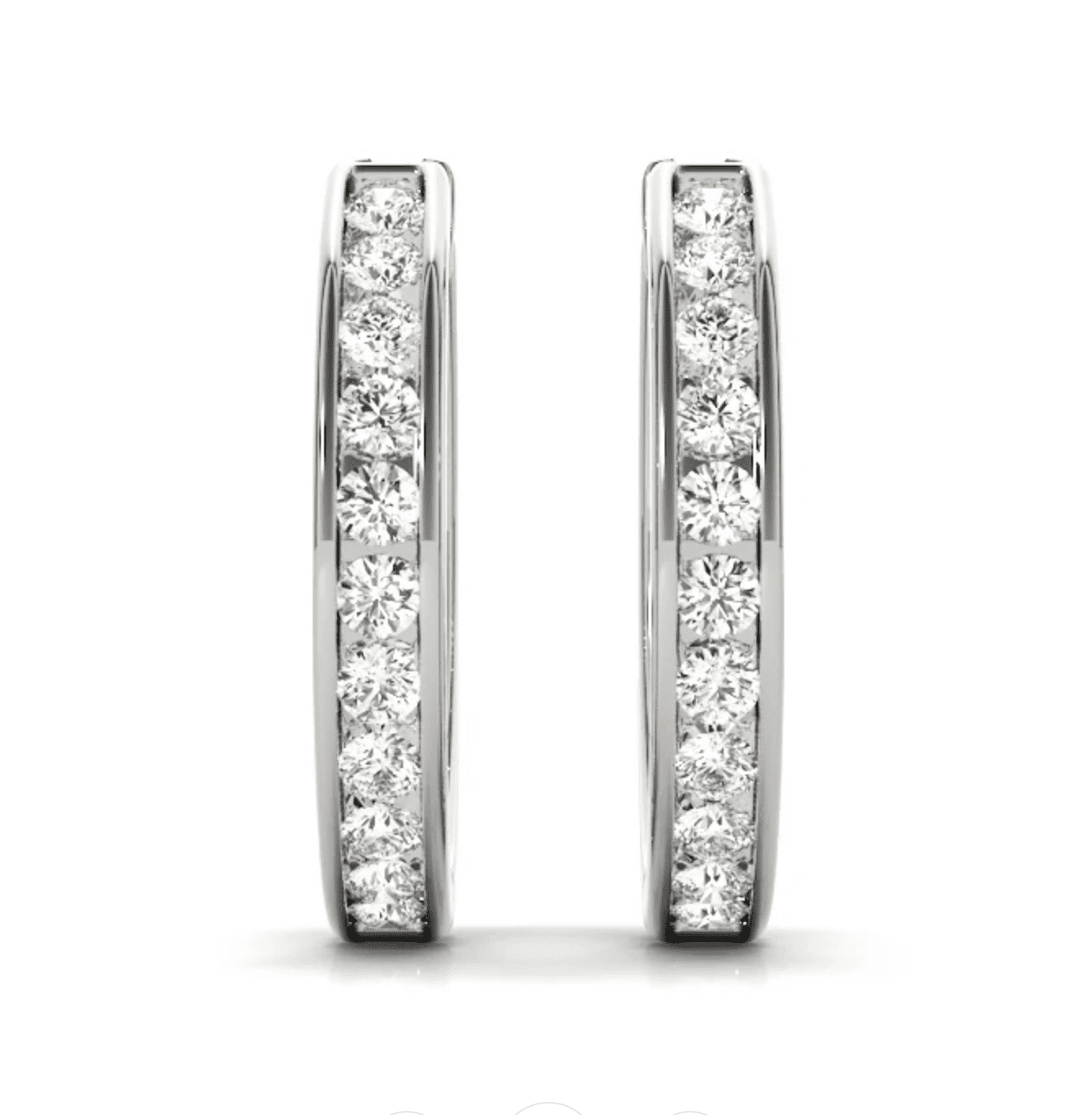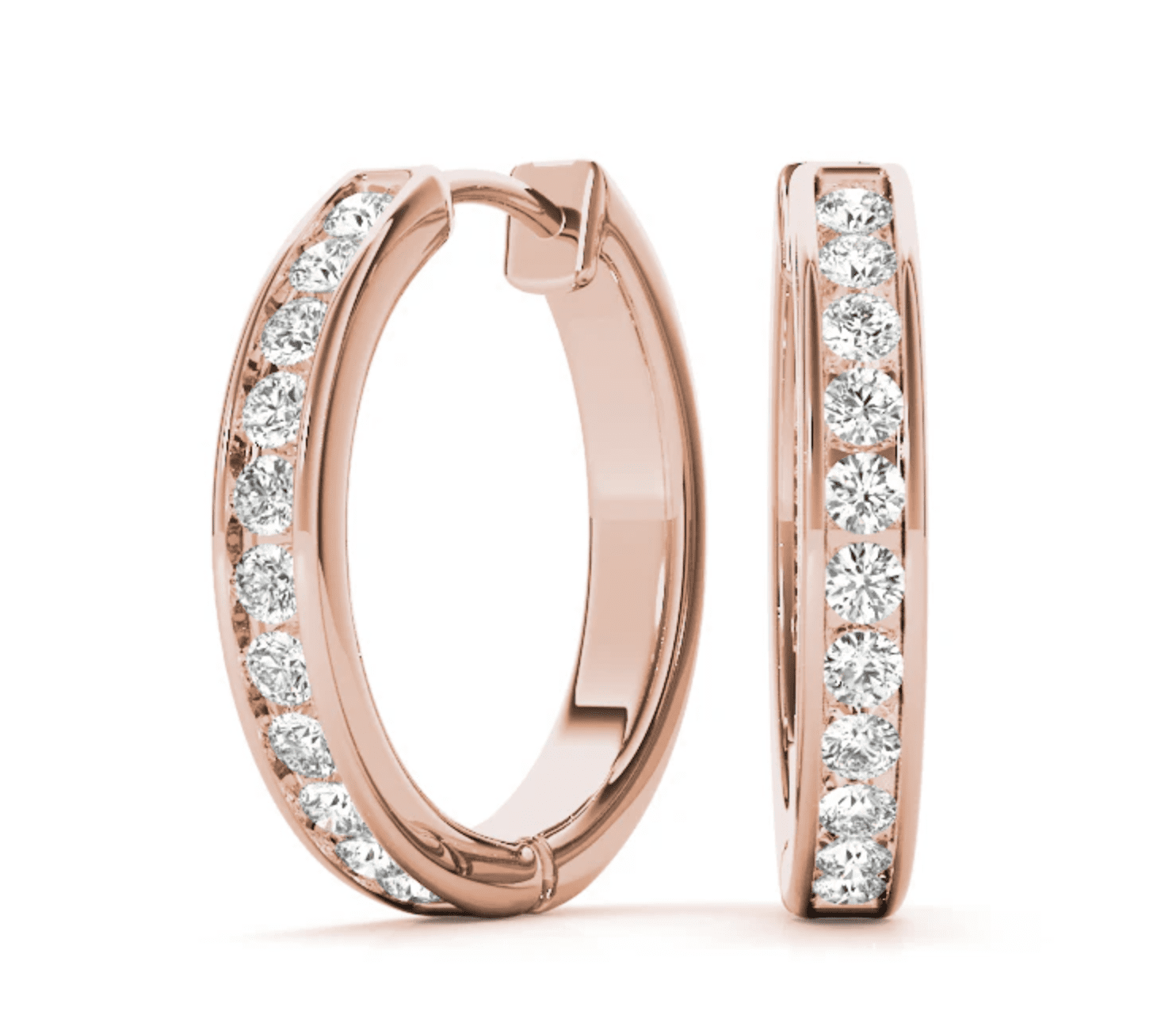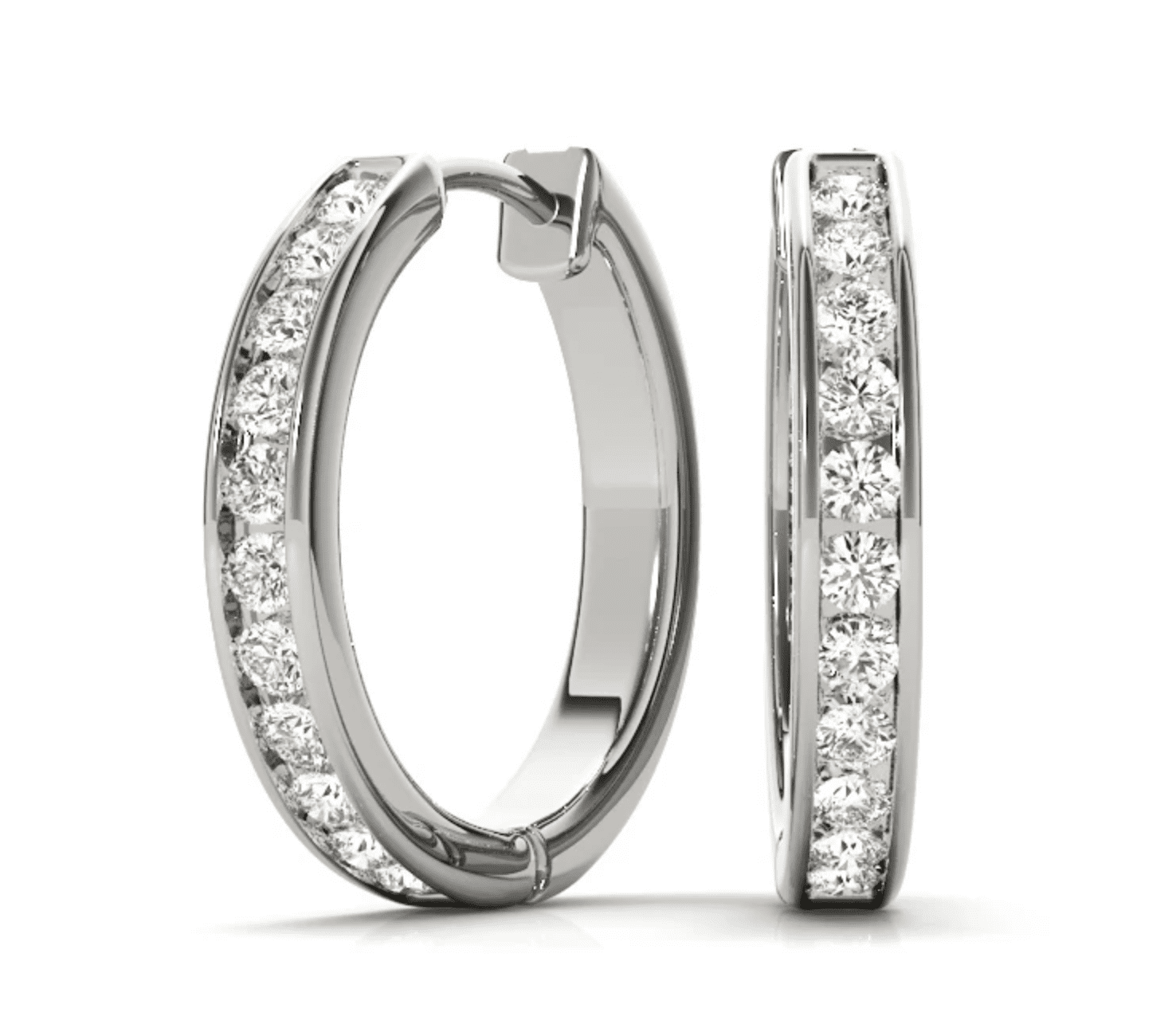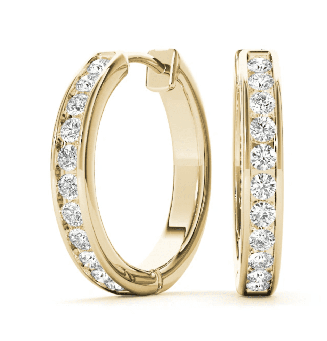 Elevate your elegance with these stunning channel-set diamond hoop earrings. Each earring features a seamless band of radiant diamonds, expertly set in a channel setting that allows the stones to sit flush against the metal. This design not only showcases the diamonds’ brilliance but also offers a sleek, contemporary look. Perfect for both everyday wear and special occasions, these hoop earrings will add a touch of sophistication and sparkle to any ensemble. Crafted from high-quality materials, they provide comfort and durability, ensuring they will be cherished pieces in your jewelry collection.