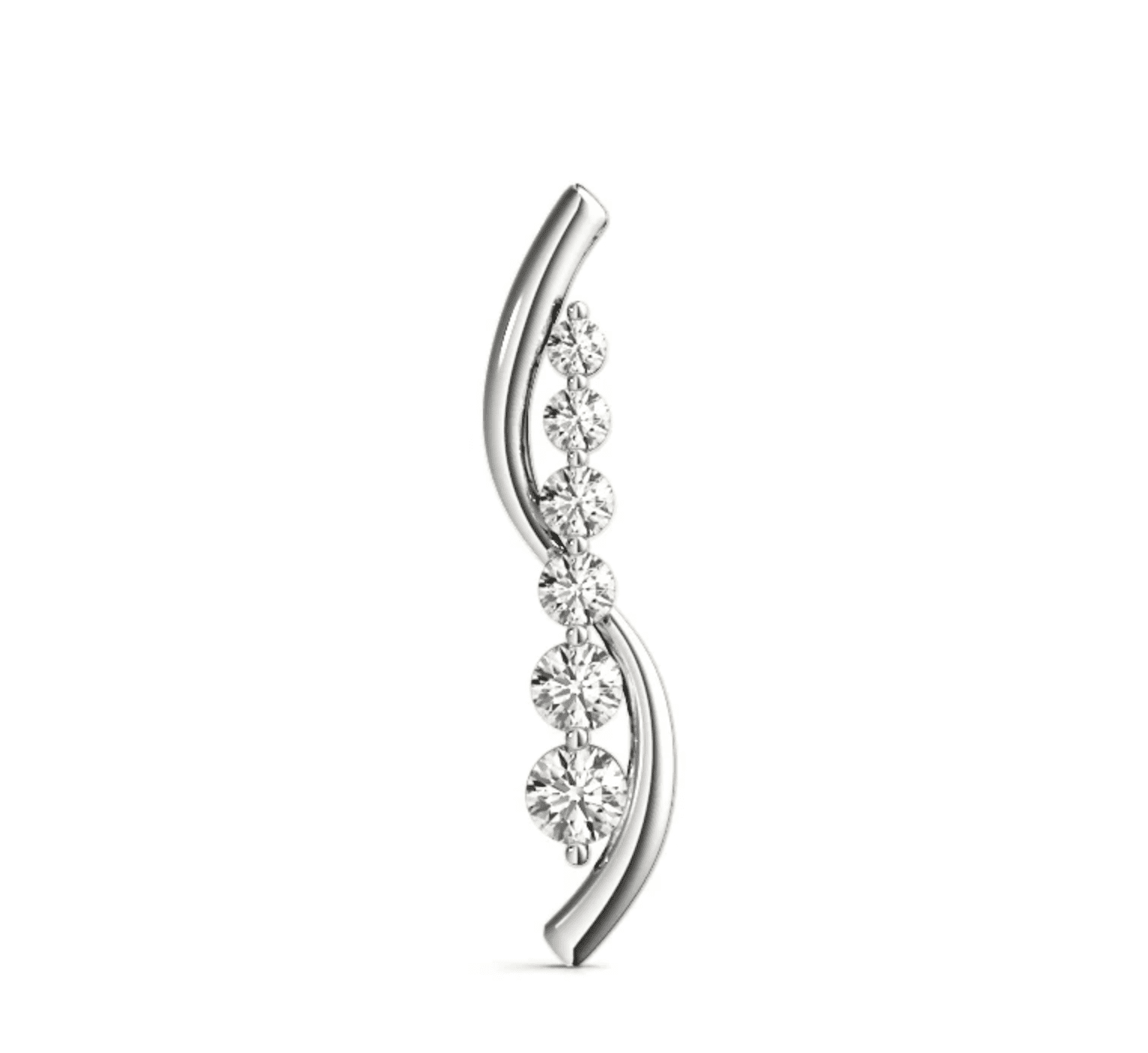 Six brilliant diamond solitaires are beautifully arranged in a cross formation, set along an elegant S-shaped gold strip. This artistic design combines the fluid curves of the S-shape with the timeless sparkle of the diamonds, creating a pendant that exudes both grace and contemporary charm.