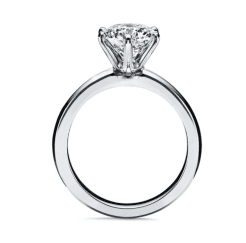 A captivating round-cut diamond elegantly showcased in a six-prong setting, ensuring maximum brilliance and security. This timeless design enhances the diamond’s sparkle while providing a classic and sophisticated look, making it a perfect choice for any occasion.